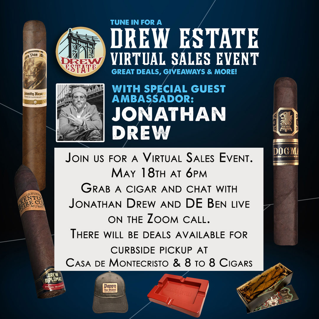 Jonathan Drew will be joining us over the live Zoom call to chat and offer deals on Drew Estate Cigars. Register with the button below and then join us on the Zoom call May 18th for a chat and the deals. You can […]